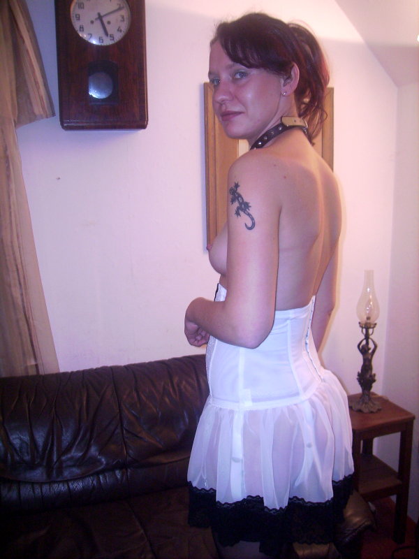 is wearing an open retro style bra and also a Waist cincher and Nylons